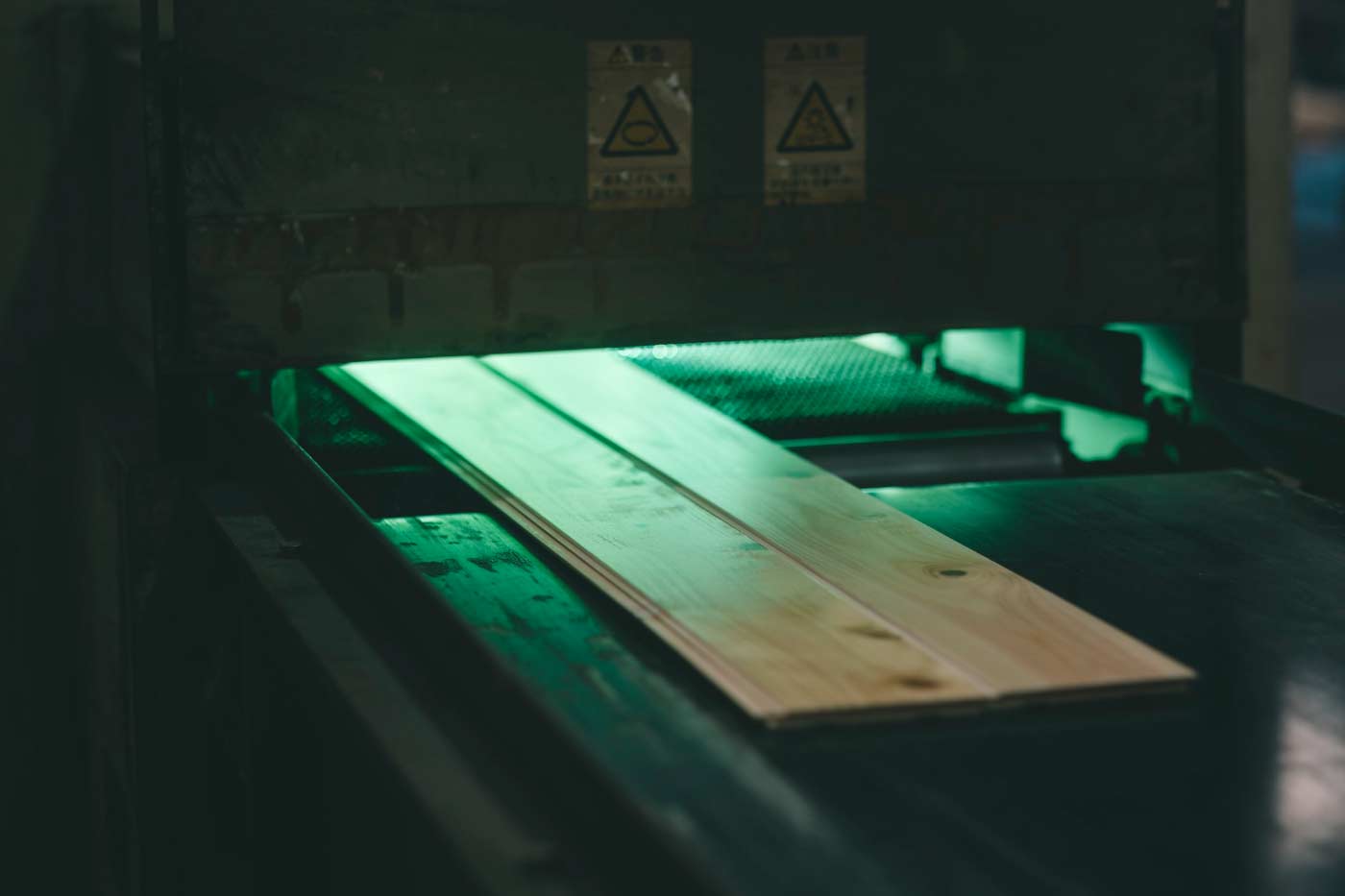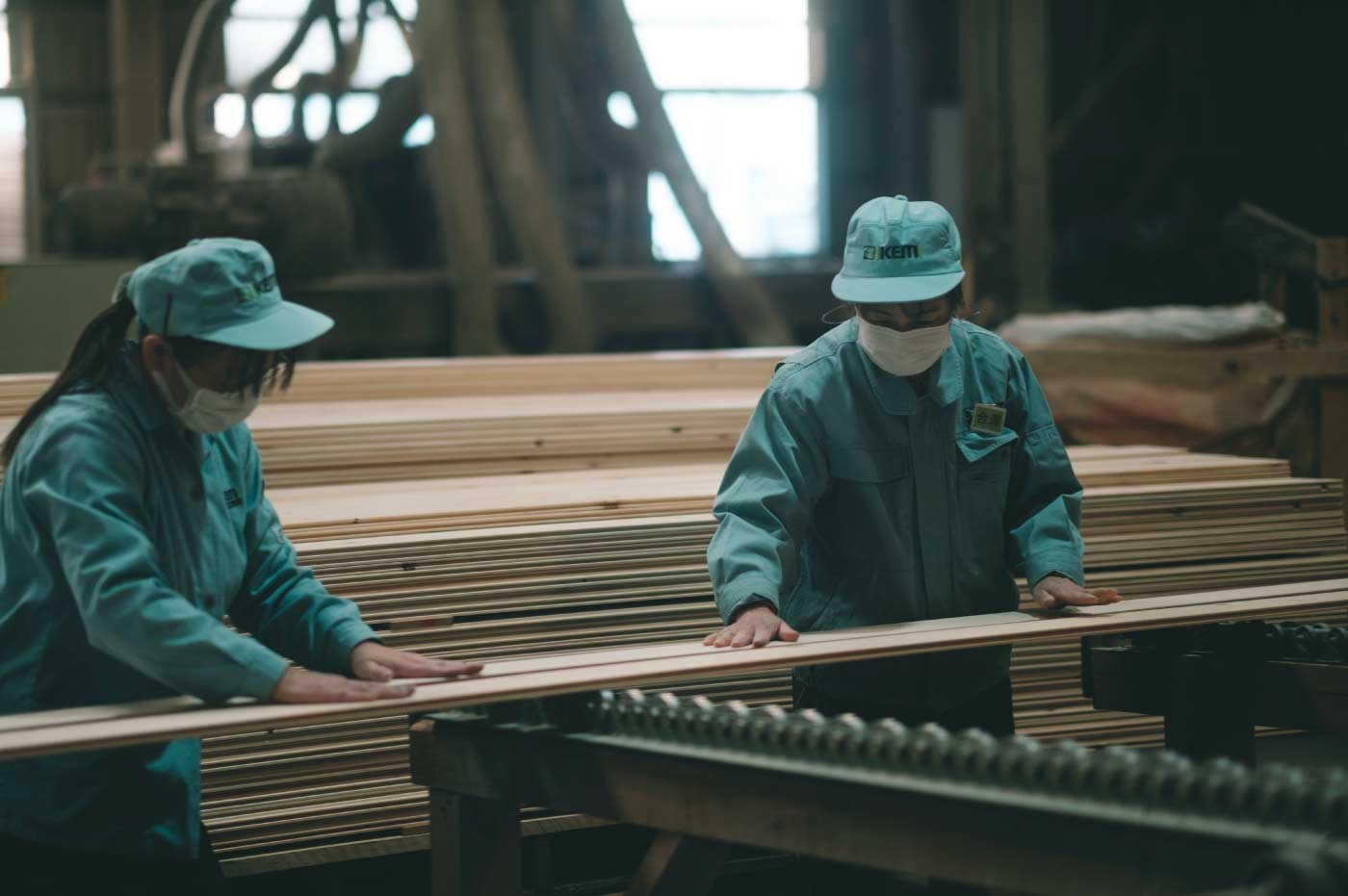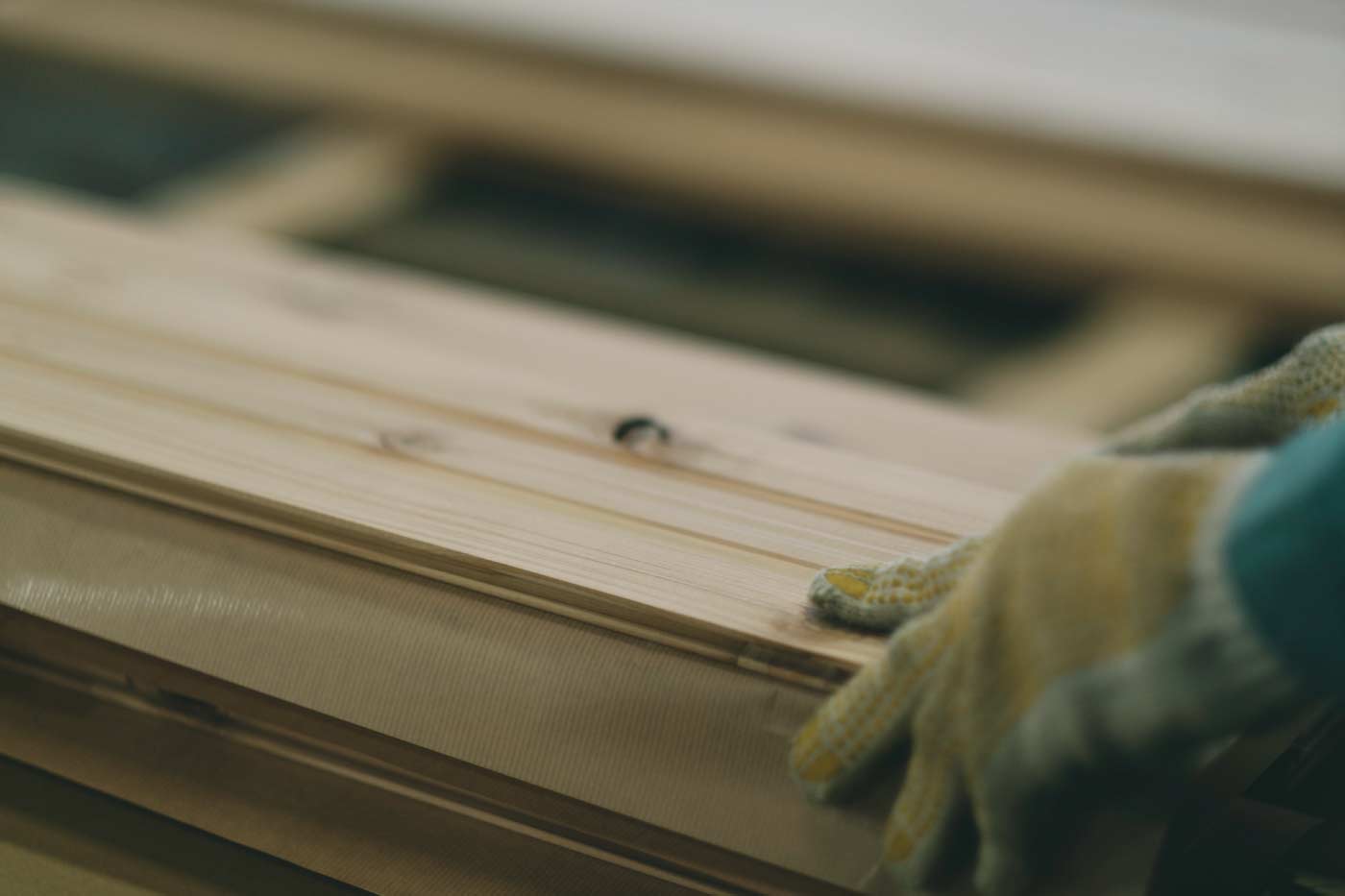 モルダー、サンダー、テノーナーにて板を加工し仕上げた後、人による検品作業を実施。