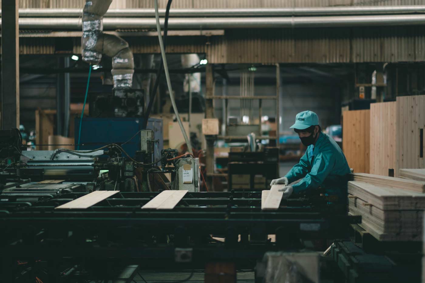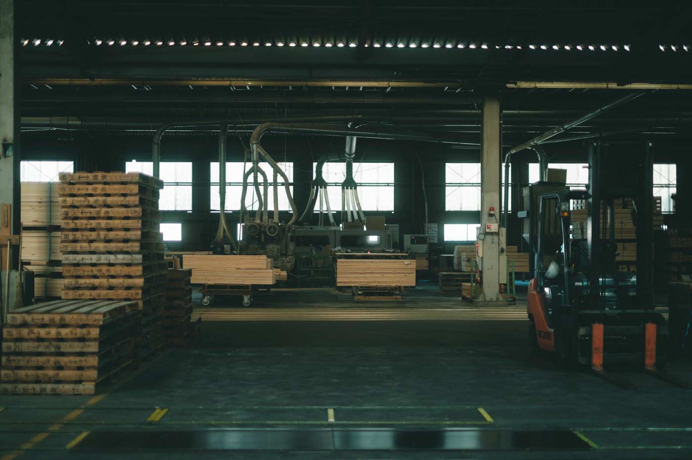 最大で月間1万坪生産可能な工場設備を有し、国産針葉樹無垢内装材の生産量において国内最大級の実績を誇ります。