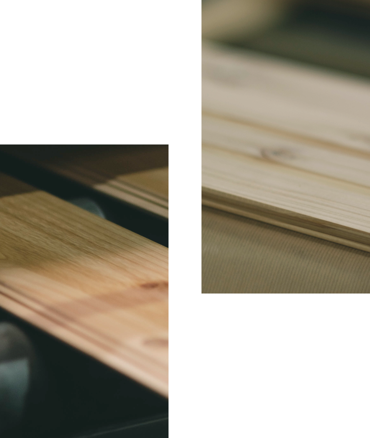 檜は1ヶ月、杉は2ヶ月程度「天日乾燥」し、木材の含水率をある程度均一にしております。