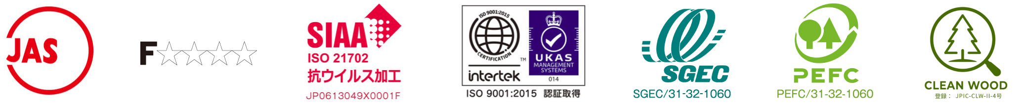 - 世界で最も厳しいホルムアルデヒド放散水準のF☆☆☆☆基準をクリア