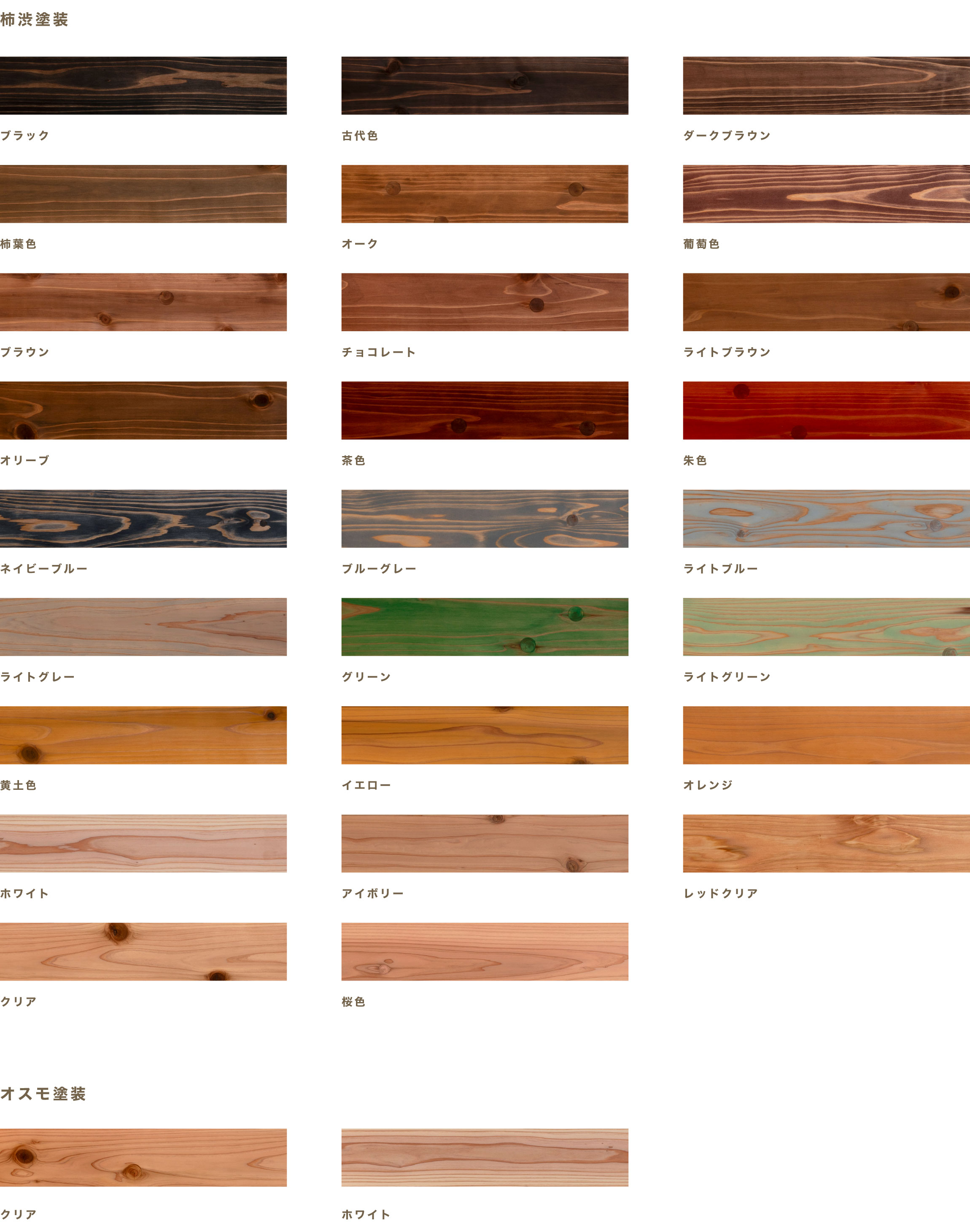 自然塗装としてオイル性の、柿渋塗装とオスモ塗装をご用意しています。
